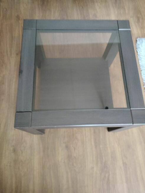 Stolik kawowy że szklaną wstawką wymiary: wysokość 46cm szerokość 64cm x64cm Jedno przebarwienie pokazane na ...